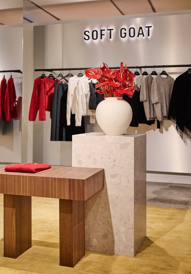 Det svenska kashmirvarumärket, grundat av Stephanie Bergström, flyttade nyligen in på Selfridges Contemporary Studio i den brittiska huvudstaden. Premiären var den 9 december och butiken på 20 kvadratmeter har öppet till i början av februari nästa år.