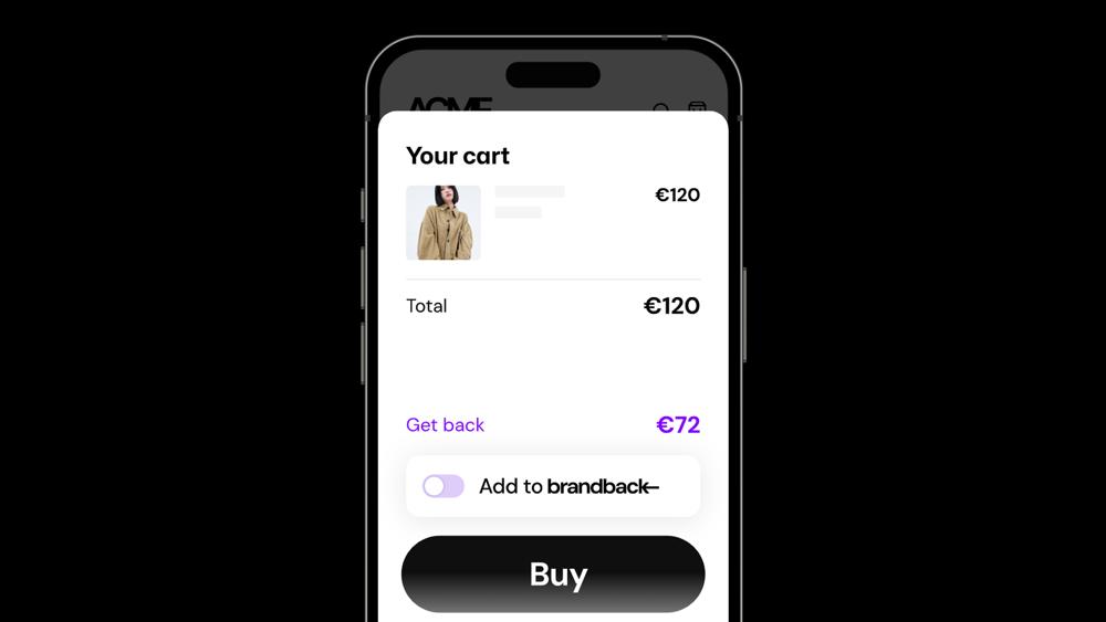 Så här fungerar det i praktiken: Brandbacks plattform ansluter direkt till återförsäljarens e-handelssystem via API eller plugin, och bäddar in återförsäljningsfunktionalitet i produktlistor, orderhistorik och kassa. Under det ursprungliga köpet visar en växlingsknapp produktens uppskattade återförsäljningsvärde. Den kan slås på eller av och avbryter inte kassaflödet – vilket gör återförsäljning till en sömlös del av den ursprungliga shoppingupplevelsen.